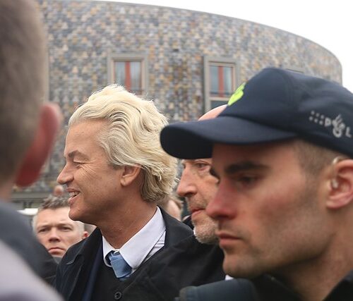 Even later loopt een man met twee zoontjes in voetbaltenue voorbij. Ook hij geeft aan te overwegen om op Wilders te stemmen. ,,Ik heb altijd links gestemd. Maar als je, zoals ik, tussen het Marokkaanse straattuig woont en je ziet dat je kinderen niet meer leuk buiten kunnen spelen ga je vanzelf nadenken over een andere partij. Daarom overweeg ik nu een stem op de PVV, maar eigenlijk ben ik nog zwevend.” Dat geldt niet voor het echtpaar dat we meteen daarna aanspreken. ,,Geertje”, roept de man enthousiast. ,,Die benoemt de problemen tenminste”, zegt zijn vrouw. ,,Maar het is niet te hopen dat hem hetzelfde overkomt als Pim in 2002″, zegt ze doelend op de moord op Pim Fortuyn. Haar man mengt zich in het gesprek. ,,Ook Pim had een duidelijke visie voor dit land. Hij werd vermoord en kijk wat er de afgelopen jaren is gebeurd. Dit land is compleet naar de kloten aan het gaan. Het Nederland waar ik ben opgegroeid bestaat niet meer. Ik wil graag terug naar die tijd. Ik ben er klaar mee dat ik in grote steden op bepaalde plekken het gevoel krijg dat ik in Marokko loop. Ik ben er klaar mee dat ik hoor hoe onze Nederlandse kinderen met een accent praten om er maar bij te horen en ik ben er ook klaar mee dat de politiek alles van die gasten maar toe blijft staan.” De man is overduidelijk emotioneel. ,,Ja, ik ben boos”, zegt hij. ,,Mag het? Alles waar mijn ouders, en later ikzelf, voor gewerkt hebben wordt gesloopt. Ik denk dat Geertje ons gaat helpen. Daarom ben ik ook lid van de PVV en ga ik op hen stemmen.”